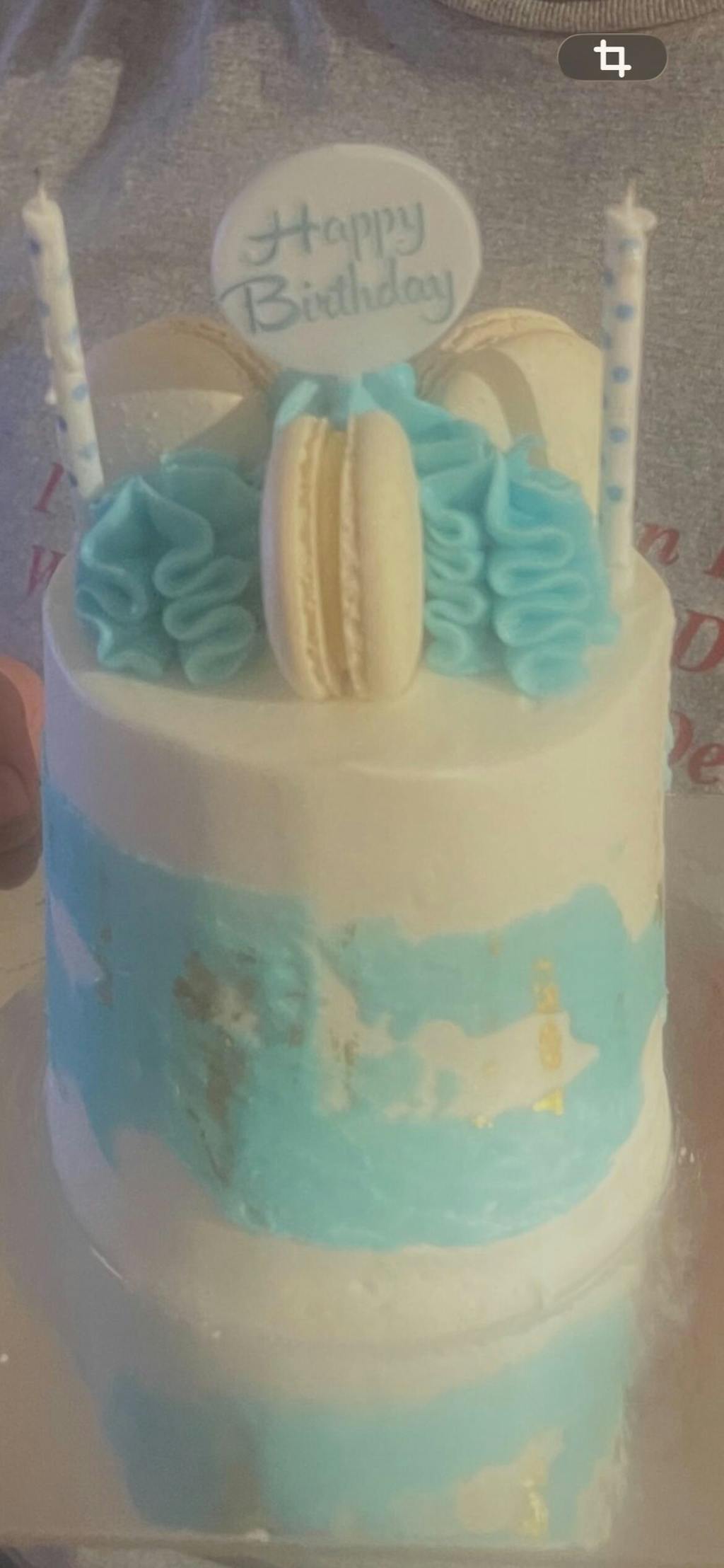 Make a statement with our signature Luxe Me cake coated in our delicious Buttercream and topped with our French White Chocolate Macarons.